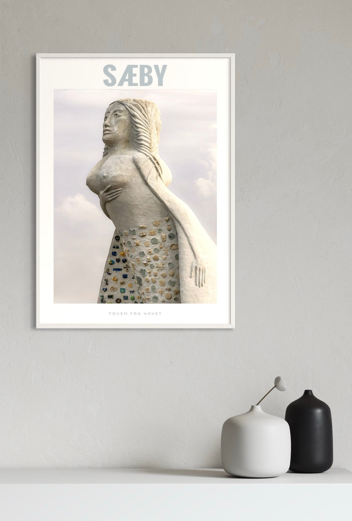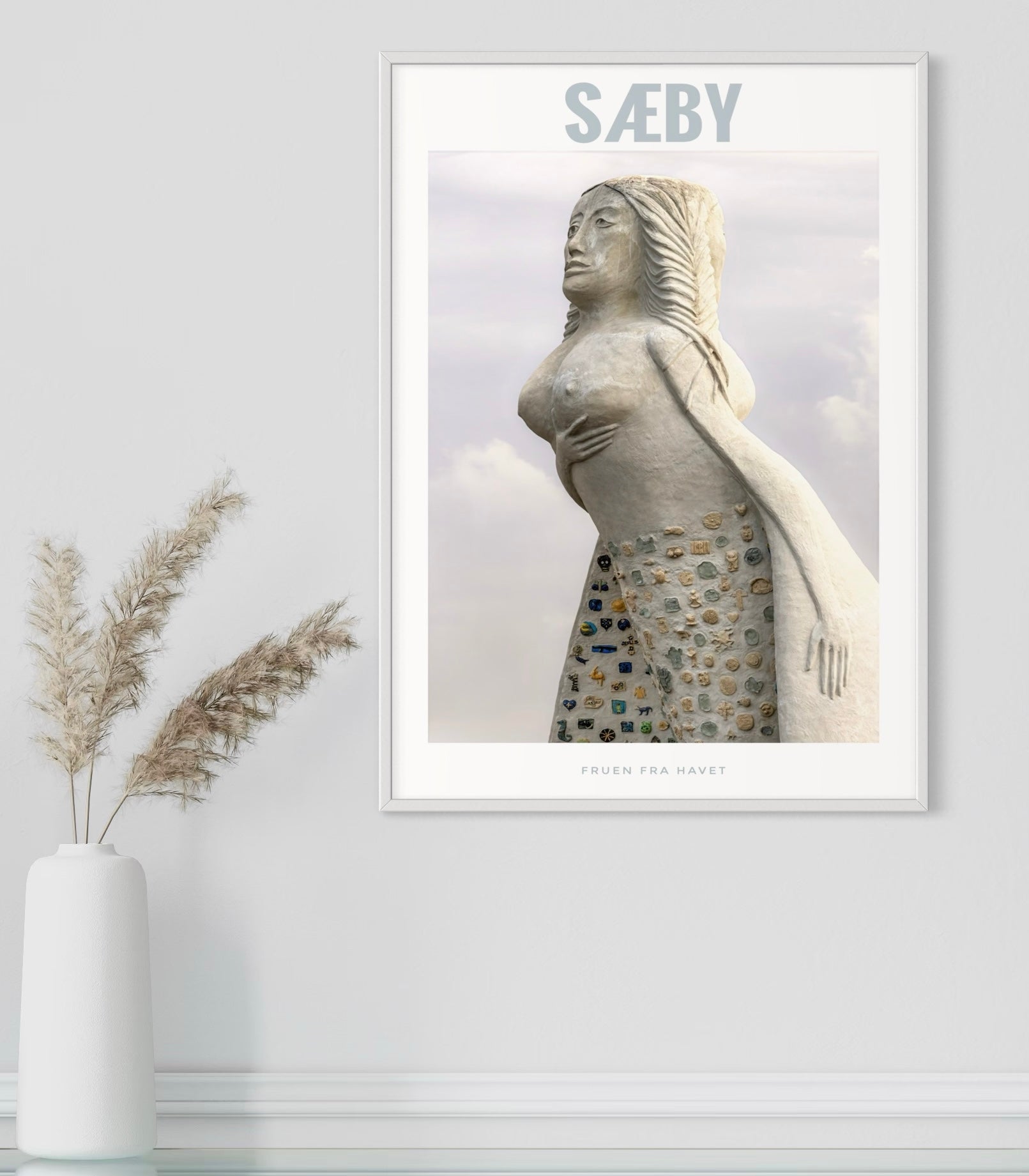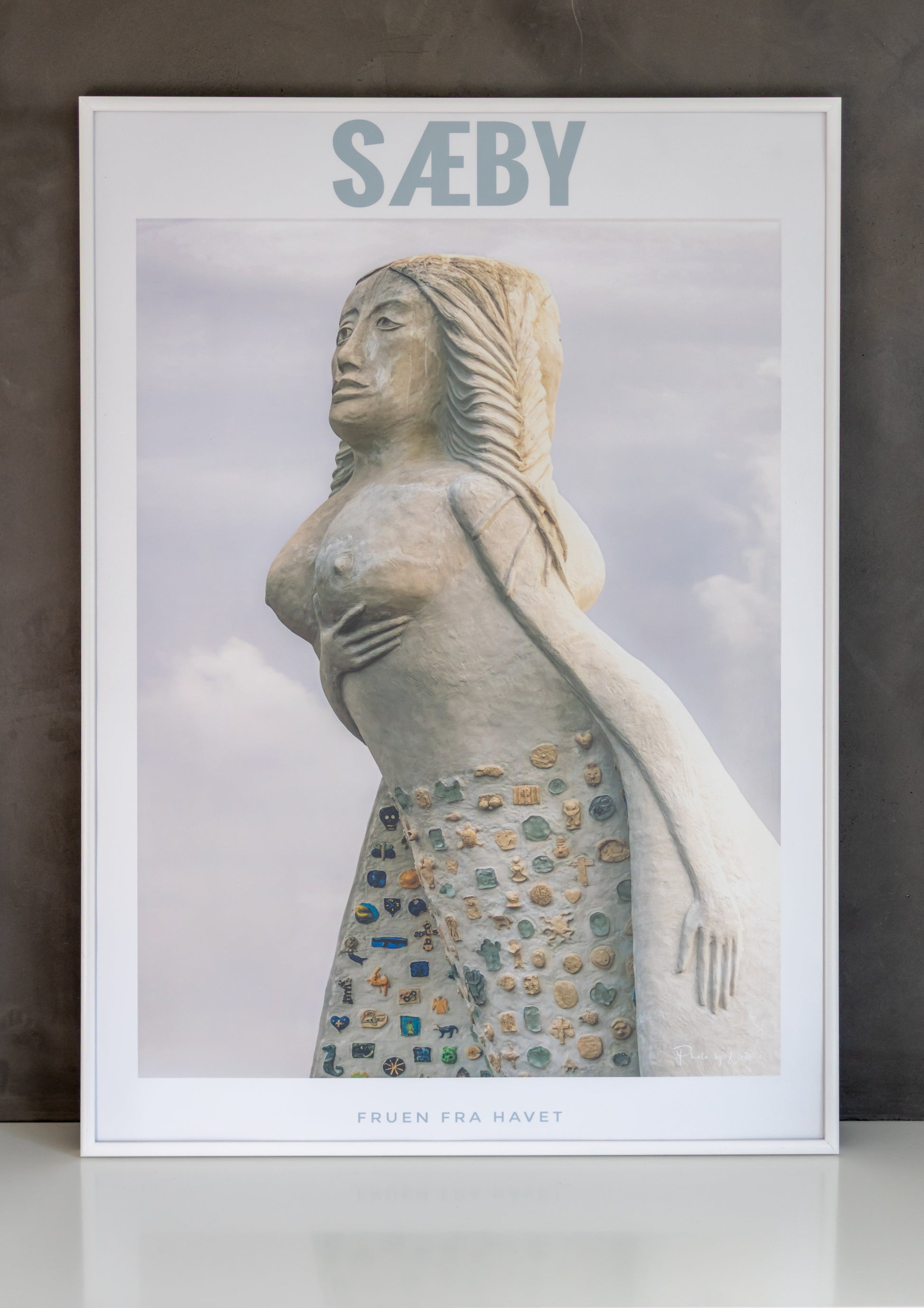 Få et stykke af Sæbys charme ind i dit hjem med denne flotte plakat af Fruen fra Havet, der stolt vogter over den hyggelige havn i Sæby